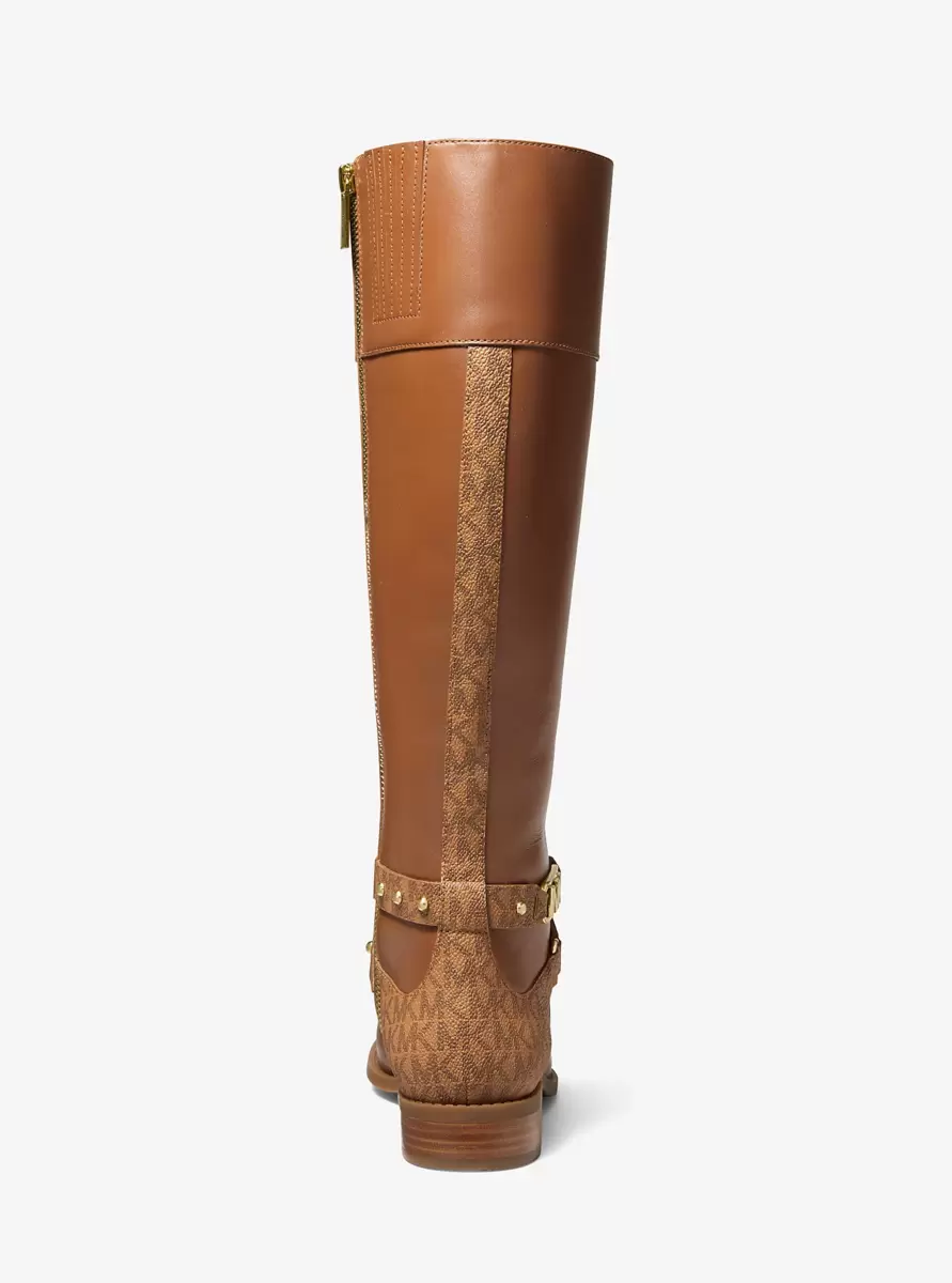 Der Kincaid-Stiefel, dessen knielange Silhouette mit Nieten und charakteristischem Canvas-Print verziert ist, ist eine Hommage an klassische Reitstiefel. Ein Blockabsatz sorgt für dezente Höhe, während ein praktischer Reißverschluss und elegante Riemen am Knöchel dem Stiefel ein edles Finish verleihen. Er passt sowohl zu Skinny Jeans als auch zu fließenden Kleidern.