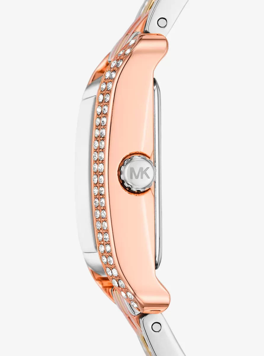 Wenn es um ausdrucksstarken Stil geht, ist unsere Monroe-Uhr ein echter Hingucker. Die mit Pavé-Fassung besetzte Lünette betont das Miniaturformat, während das dreifarbige Edelstahlarmband perfekt für einen bleibenden Eindruck sorgt. Tragen Sie sie einzeln oder kombinieren Sie sie mit anderen Uhren für ein besonders stilvolles Accessoire.