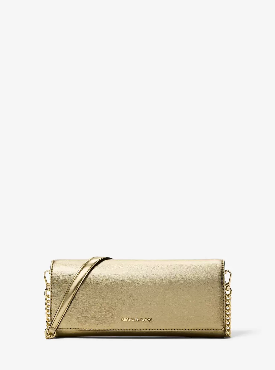 Jet Set Medium Clutch aus verziertem Metallic-Leder