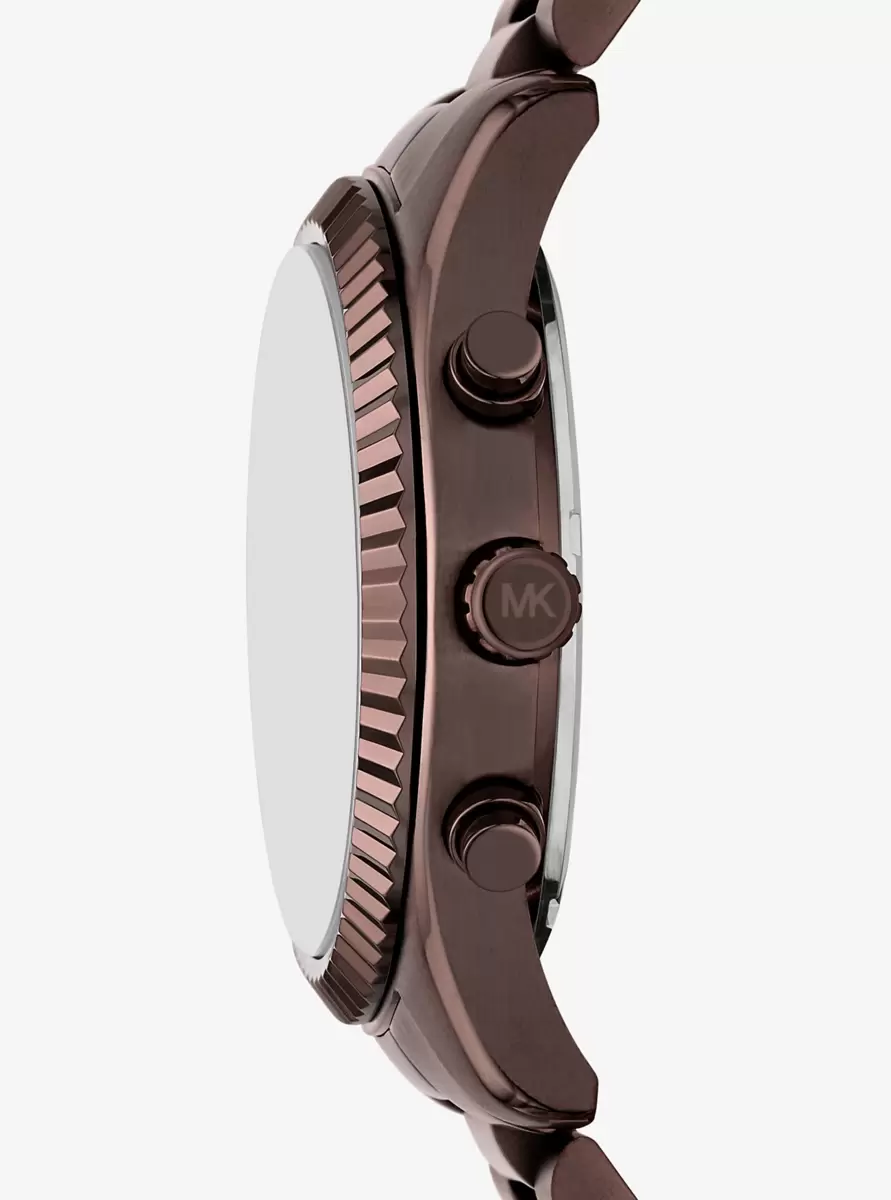 Die Lexington-Uhr besticht durch ihr übergroßes Gehäuse, das satte braune Zifferblatt und die markante geriffelte Lünette. Gefertigt aus braunem Edelstahl, verfügt sie über ein klassisches dreigliedriges Armband und rosafarbene römische Ziffern für einen raffinierten Kontrast. Sie ist die perfekte Ergänzung für Ihre Herbstgarderobe und verleiht ihr eine warme, elegante Note.
