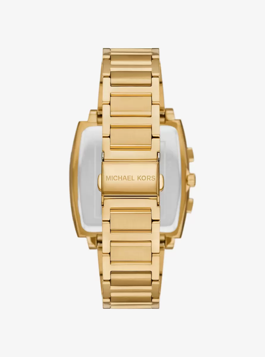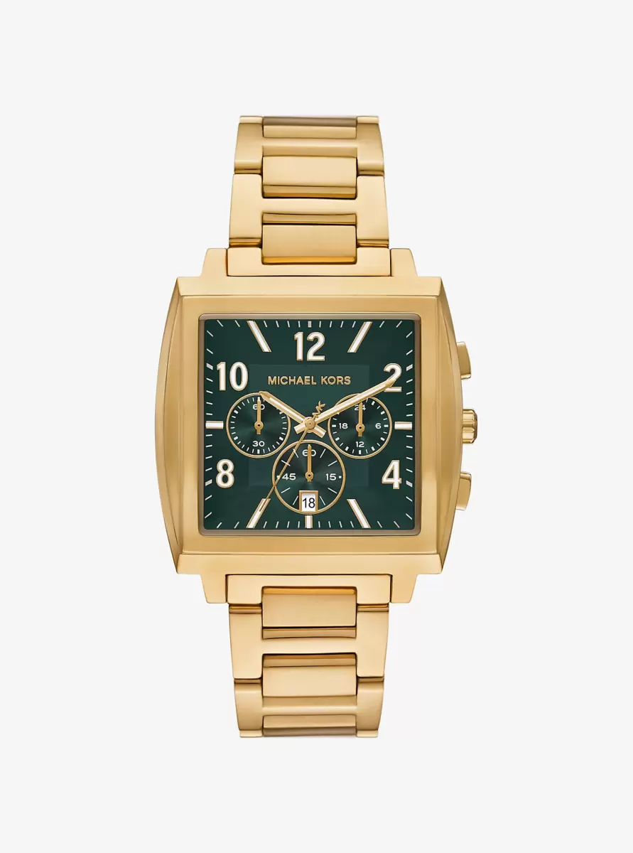 Die Rhys-Uhr besticht durch ihr markantes quadratisches Gehäuse und das satte waldgrüne Zifferblatt mit goldfarbenen Ziffern. Gefertigt aus goldfarbenem Edelstahl, verfügt sie über ein elegantes Armband, das das kantige Design perfekt ergänzt. Tragen Sie sie als stilvolles Statement-Piece, das sich nahtlos vom Business-Meeting bis zum Abendprogramm eignet.